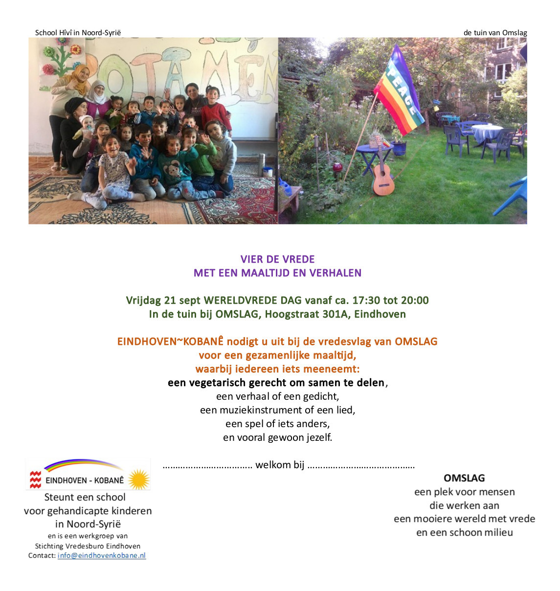 Vredesmaaltijd Kaart wordt geladen... OmslagHoogstraat 301b - EindhovenEvenementen 51.424519 5.463230599999974 Datum/Tijd Date(s) - 21/09/201817:30 - 20:00 Locatie Omslag